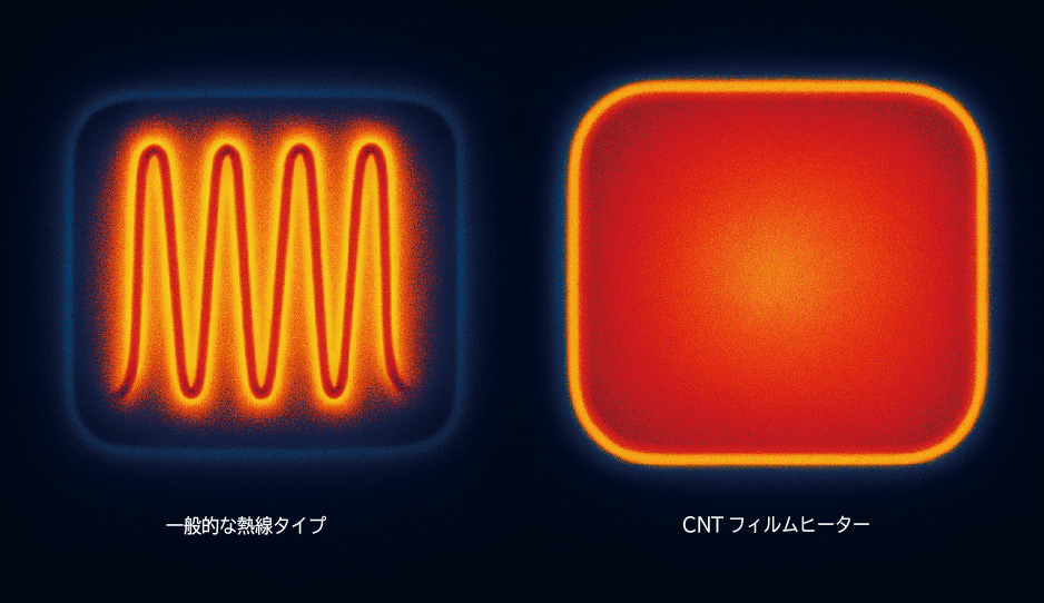 フィルム状のCNTは通電加熱することでヒーターとして使うことができます。